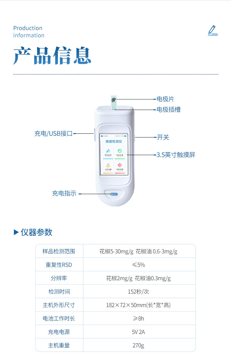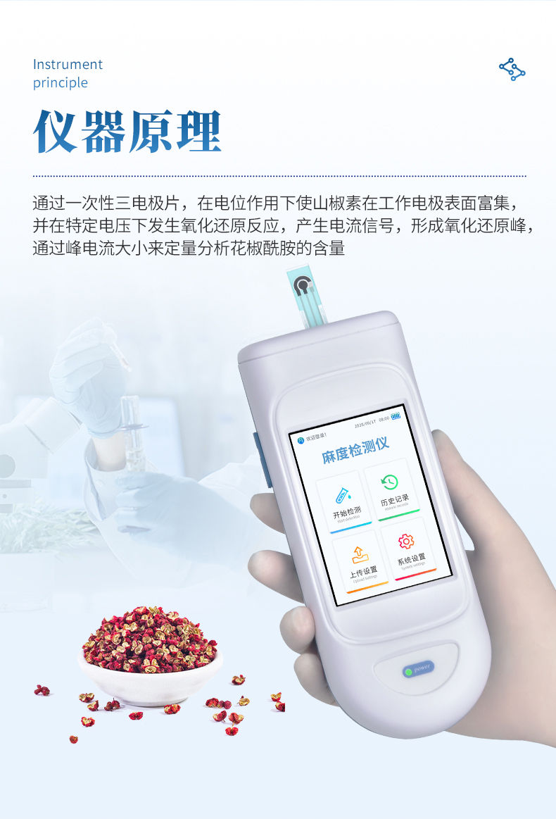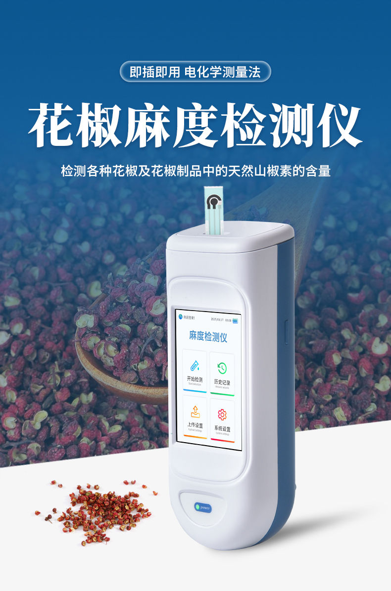 花椒麻度分析儀采用電化學(xué)測量方法,可快速、便捷地檢測各種花椒及花椒制品中的天然山椒素的含量,適用于干花椒、花椒油、花椒粉等花椒及其制品的快速檢測。