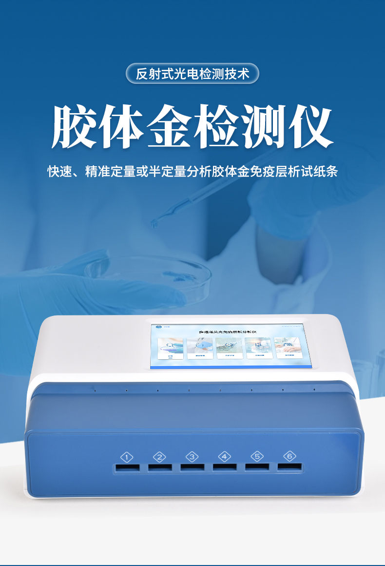 本儀器是一款專為快速、精準定量或半定量分析膠體金免疫層析試紙條(GICA)設計的高性能光學檢測設備。儀器集成了先進的光電檢測技術、智能數據處理平臺、高通量設計及強大的網絡功能,通過高穩定性光學系統實現對免疫層析結果的可靠讀取、智能分析與即時報告輸出。其堅固耐用的設計和便捷的操作流程,使其成為實驗室研究與現場快速檢測(POCT)的核心儀器之一。