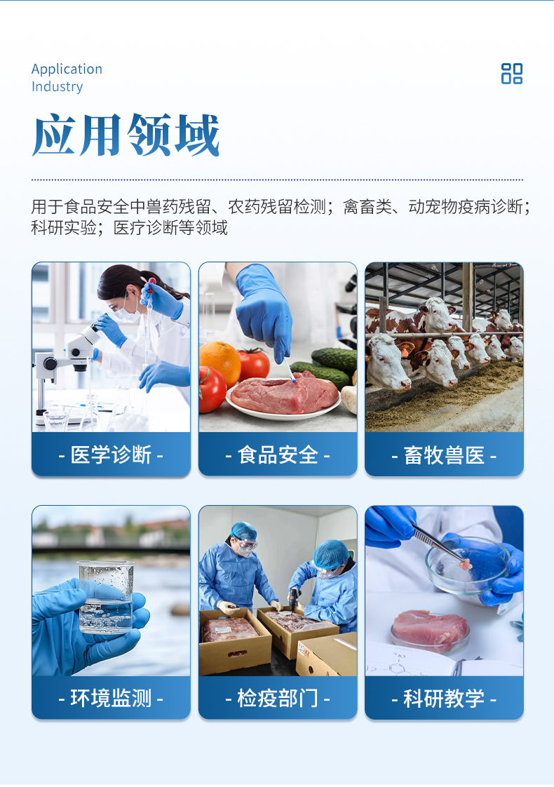 2、畜牧獸醫: 動物疫病診斷、動物源性安全指標檢測。