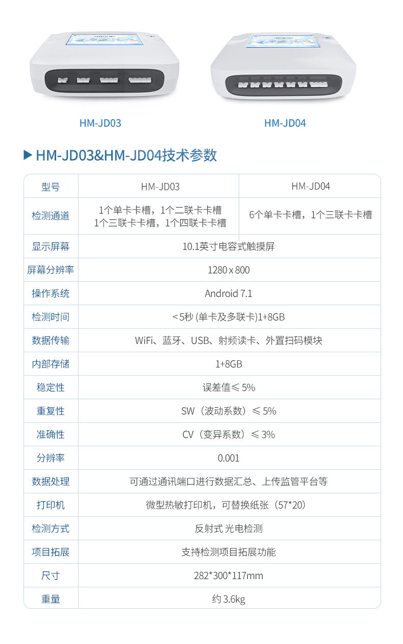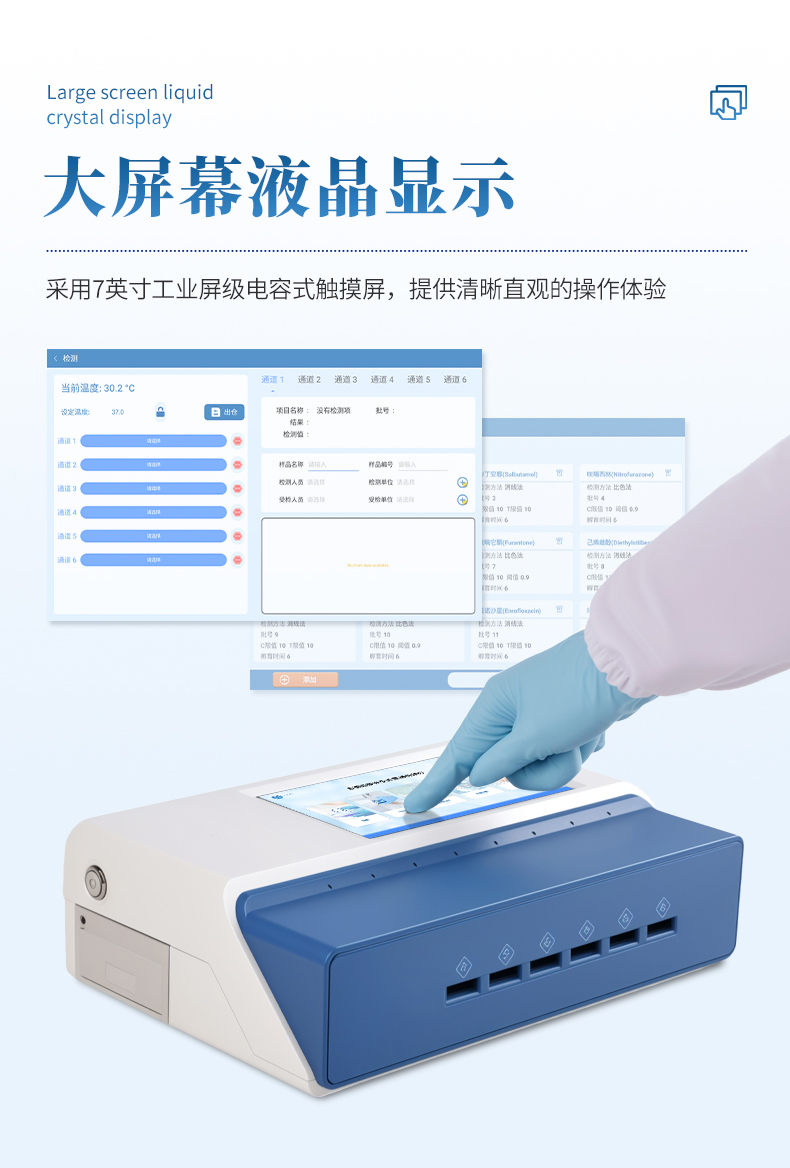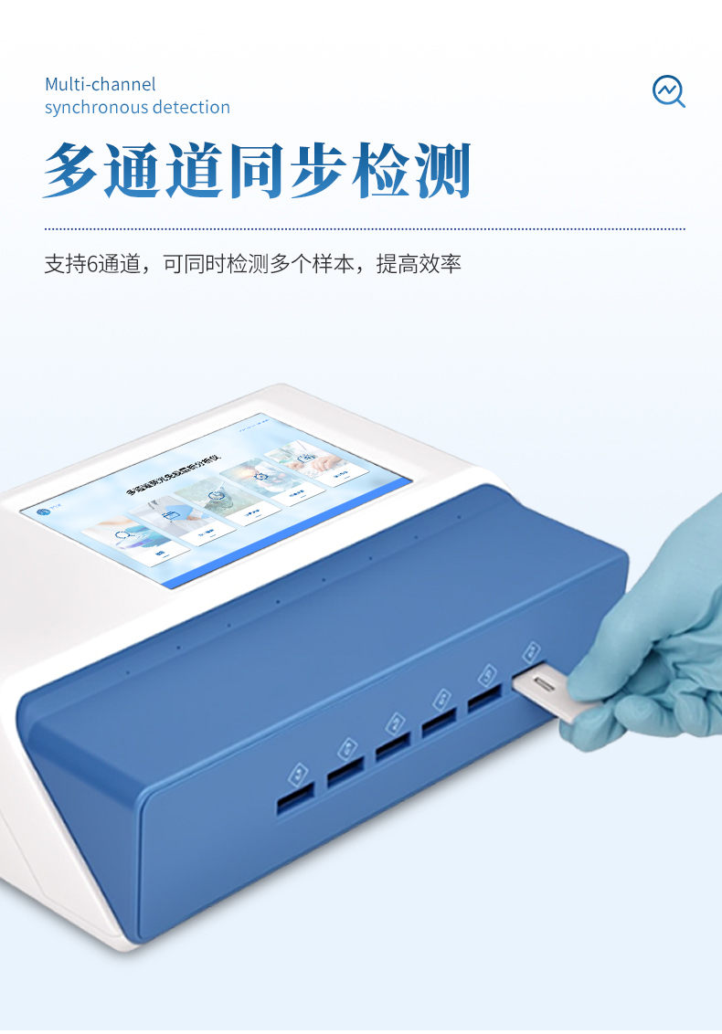 9、檢測時間:< 5秒 (單卡及多聯卡);可對樣本進行膠體金定性/半定量檢測。