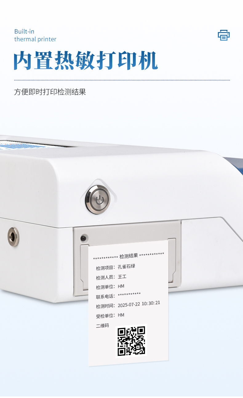 4、內置熱敏打印機,檢測完成即可現場打印標準報告,提升工作效率。